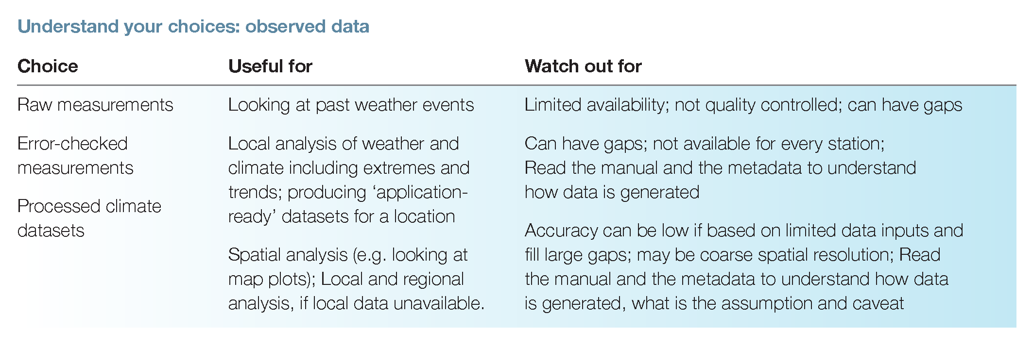 IMPORTANT: Use the simplest dataset available that covers the required range of relevant climate variables.
